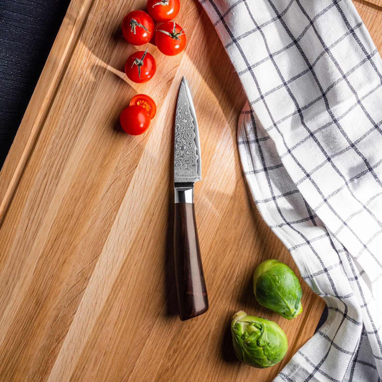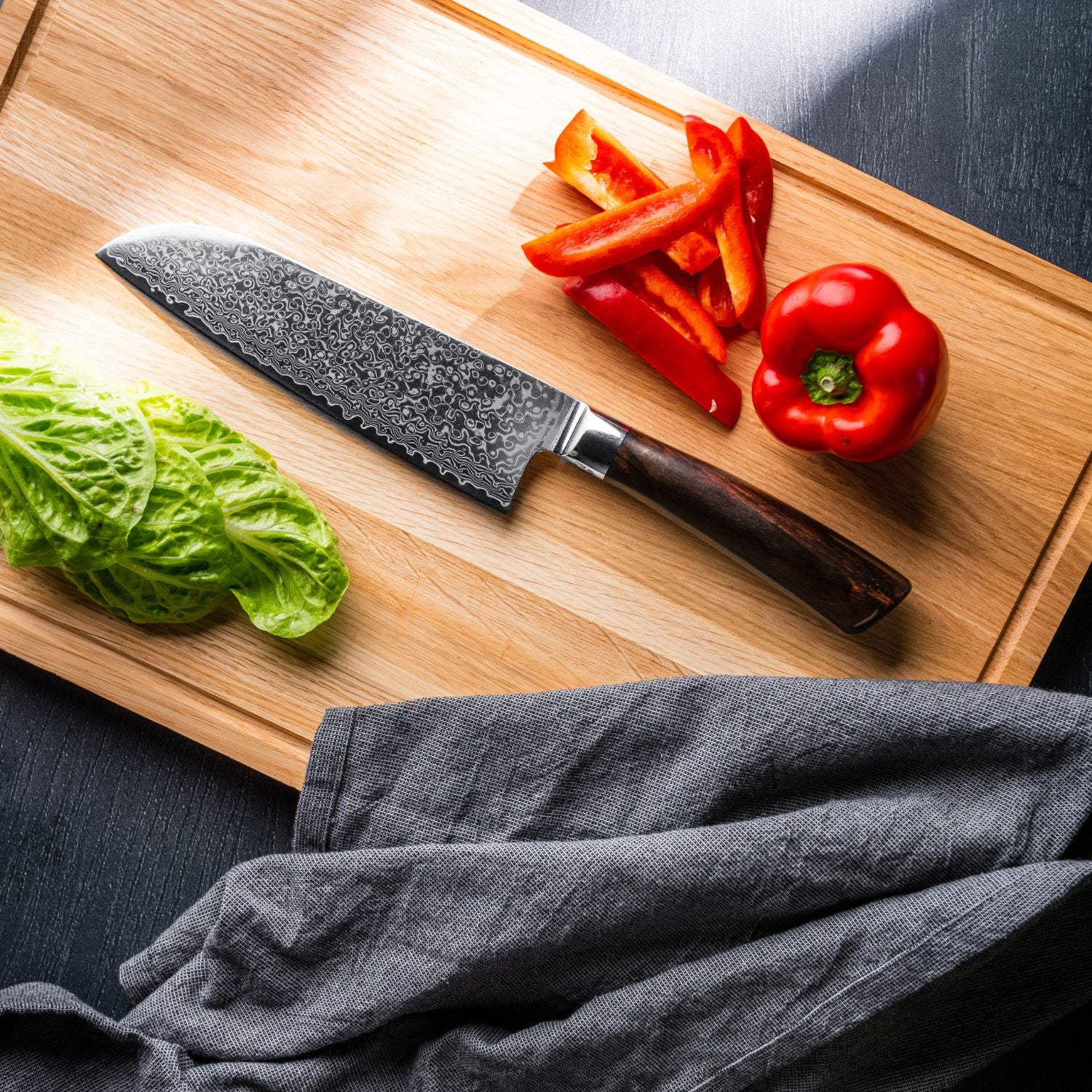 - 7 knive i 67-lag damaskusstål - dækker alle opgaver i køkkenet