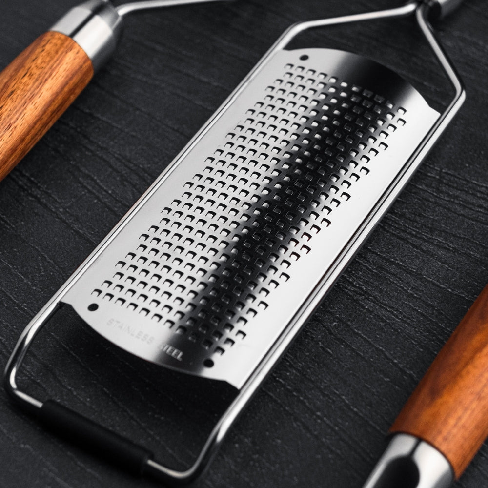 Vores serie af rivejern er udviklet så, der kombineres funktionalitet, kvalitet og design. Hvert rivejern er lavet i rustfrit stål, udstyret med et smukt håndtag i akacietræ og har en skridsikker gummikant, så du kan rive med både præcision og komfort.
