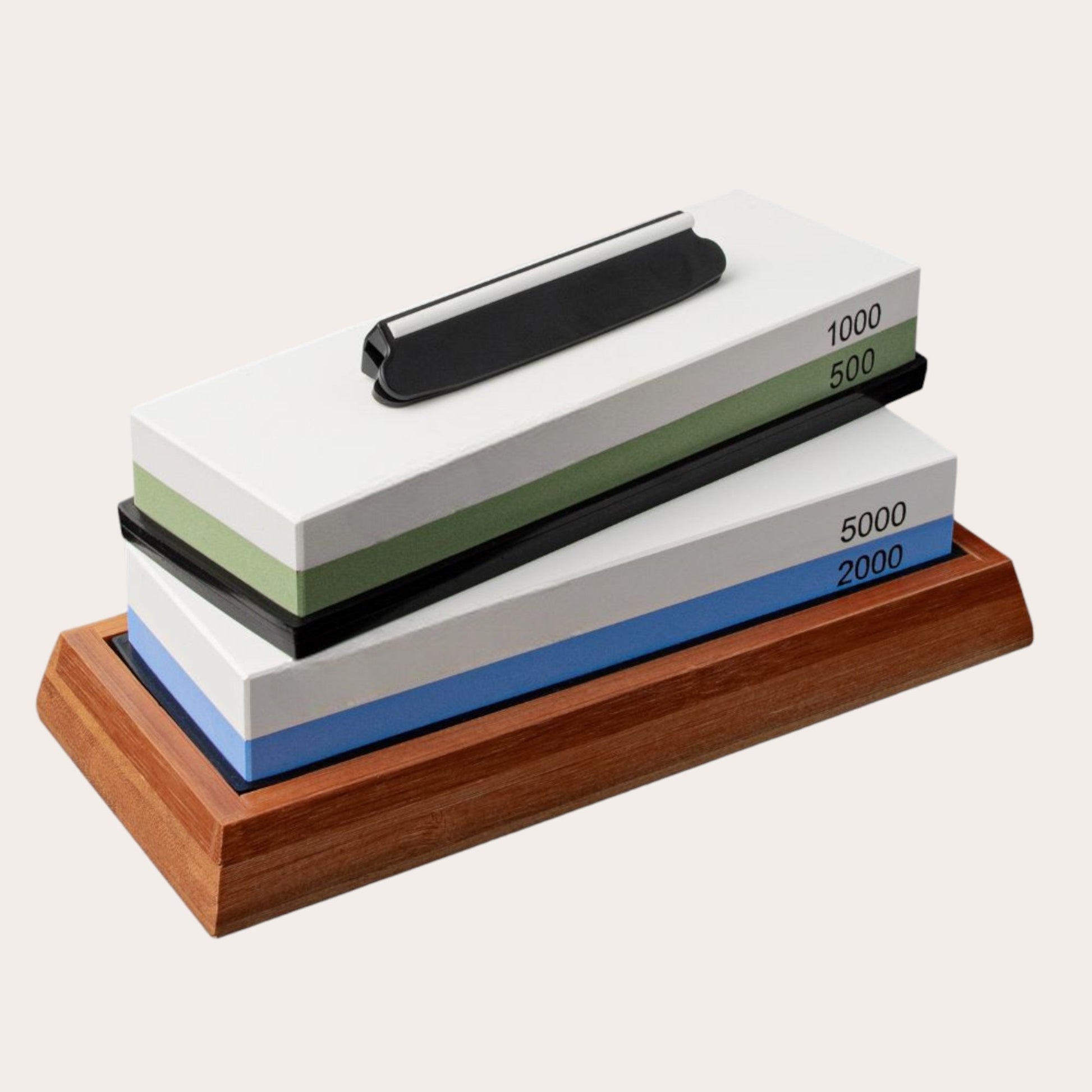 Vores slibestenssæt er din nøgle til at opretholde knivskarpheden derhjemme. Med 4 forskellige kornstørrelser tilbyder sættet alsidig slibning, der kan rette beskadigede knivblade og polere dem til perfektion.